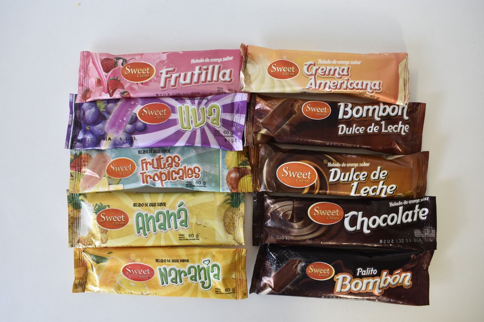 - Crema Premium: Crema de almendra, Chocolate Bariloche, Maracuya, Mascarpone con frutos del bosque, Capuccino, Chocolate Rocher, Chocolate marroc, Mousse de chocolate, Chocolate blanco, Chocolate blanco con pistaccio, Chocolate kínder, Super sambayon, Super sambayon con cerezas, Baileyscream, Chocolate sweet, Rockelts, Crema Rusa, Dulce de leche con nuez, Dulce de leche con bombón, Super Banana Split.